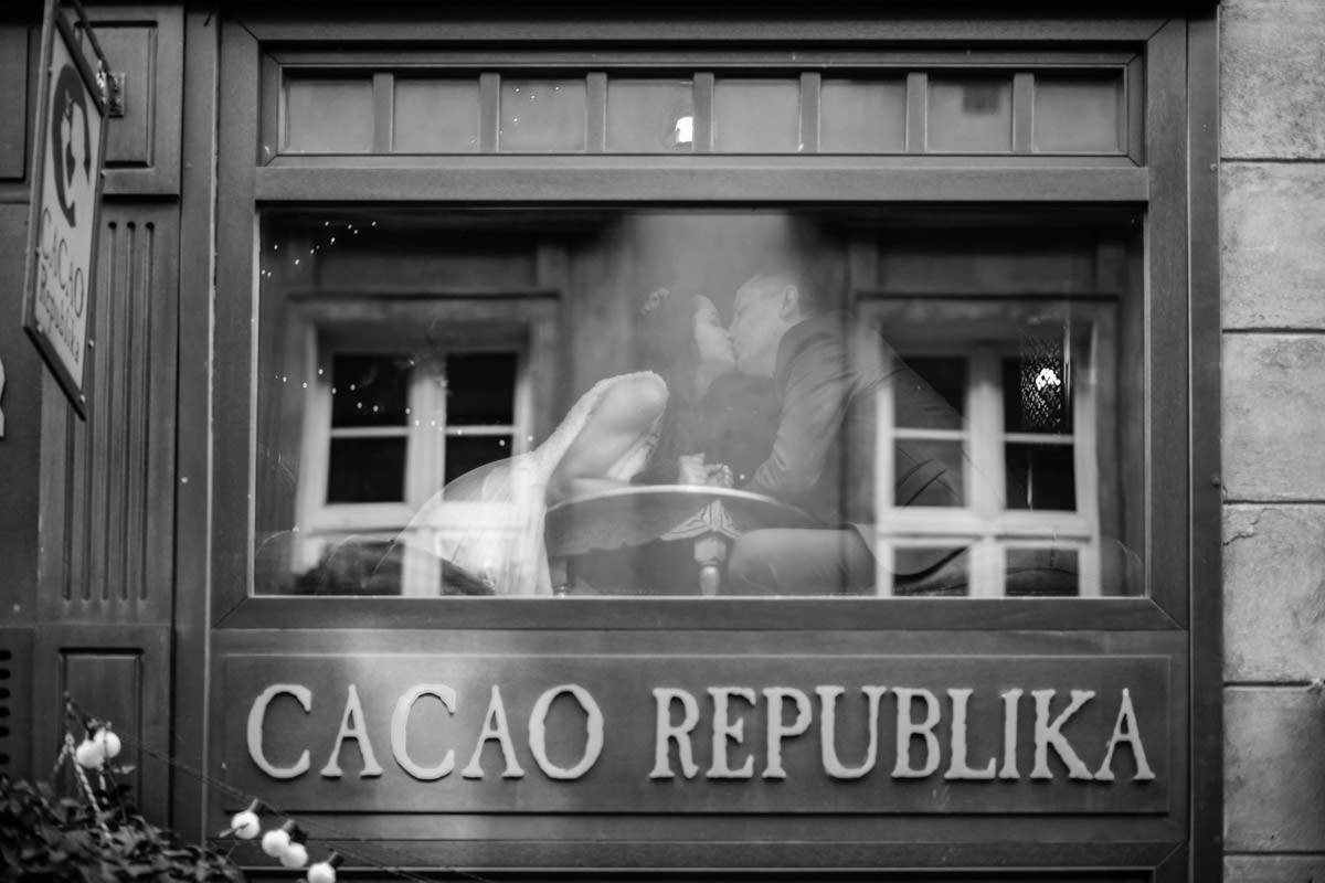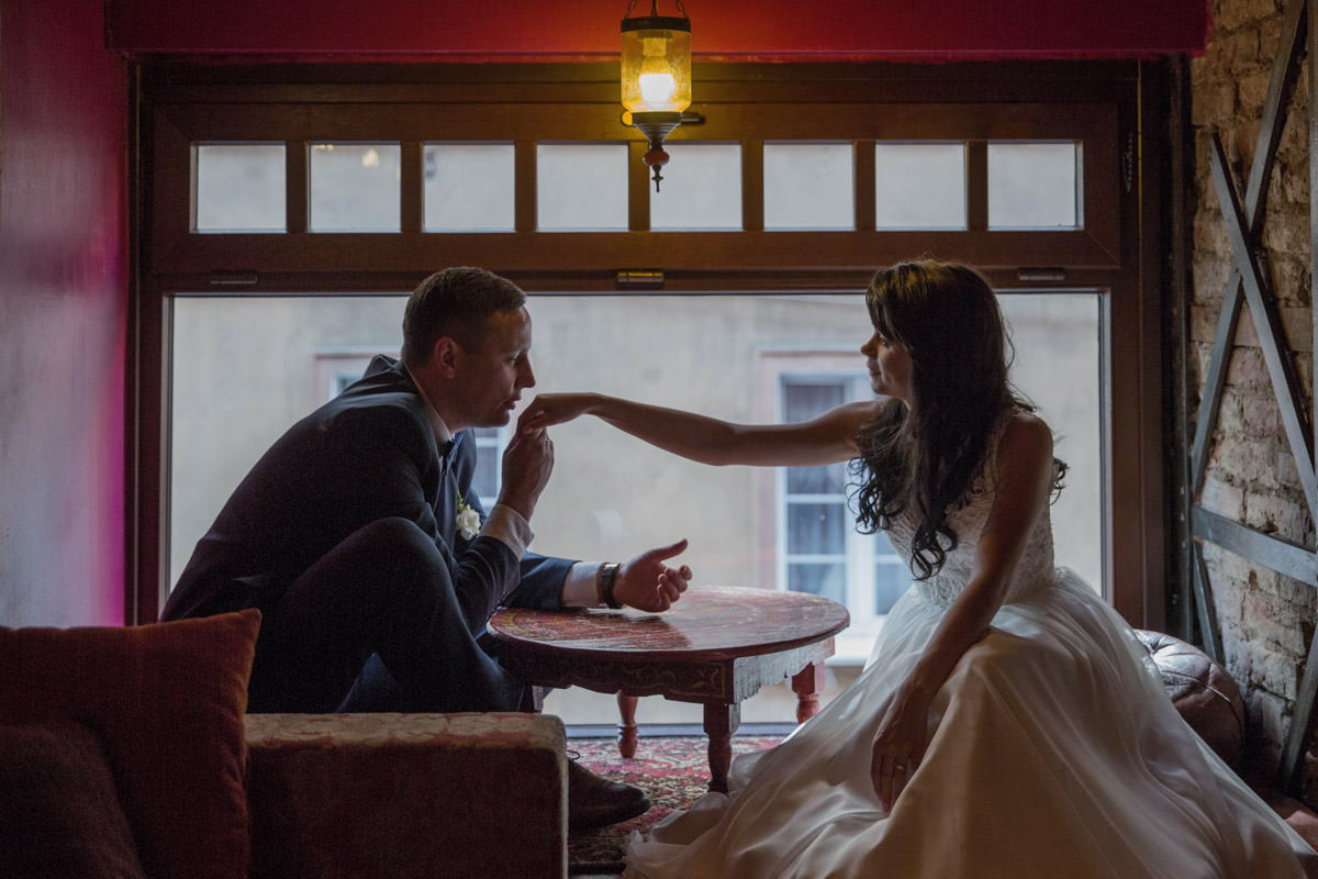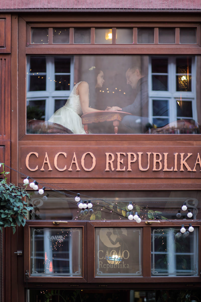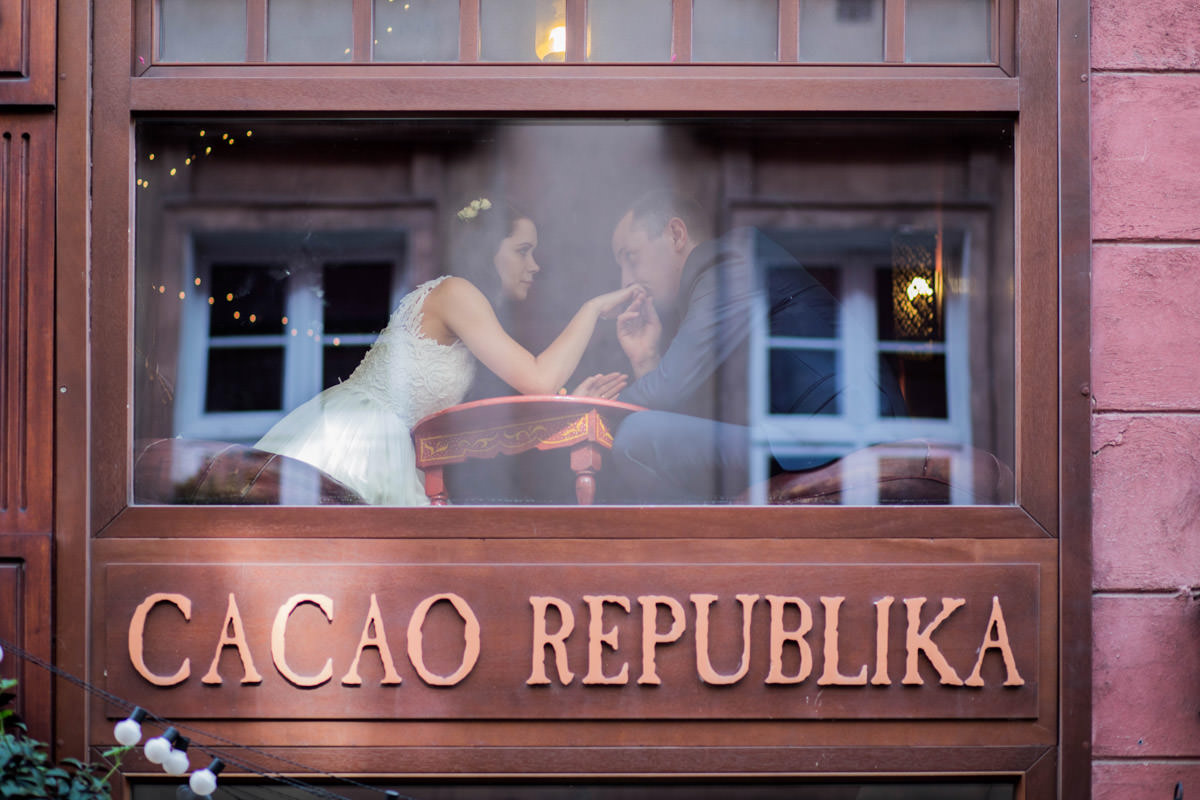 Dla mnie to niemały komplement! Nie dość, że sesja ze mną ich nie stresowała, to poczuli się dzięki niej jeszcze lepiej i pewniej! Co do miejsca sesji, to zrobiliśmy ją w uroczej kawiarence na starym rynku, nieopodal kościoła. W zasadzie godzinkę po naszej sesji byli już po ślubie!