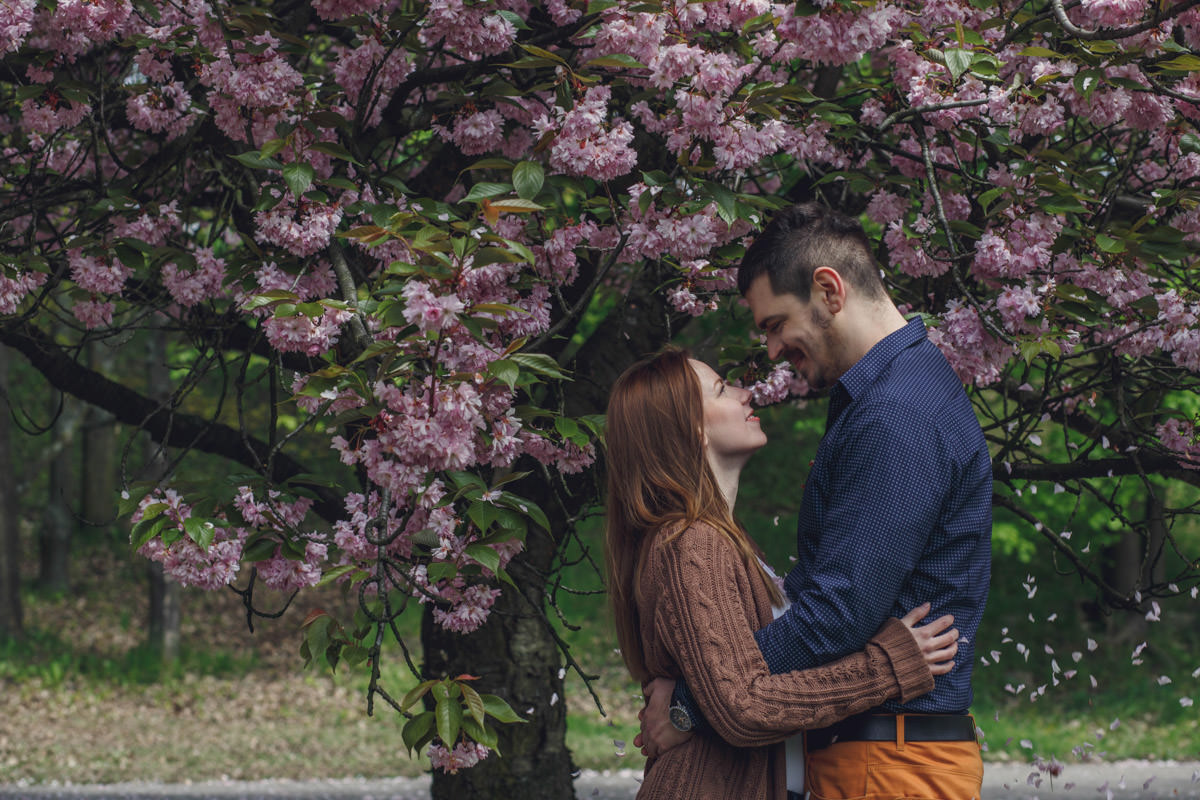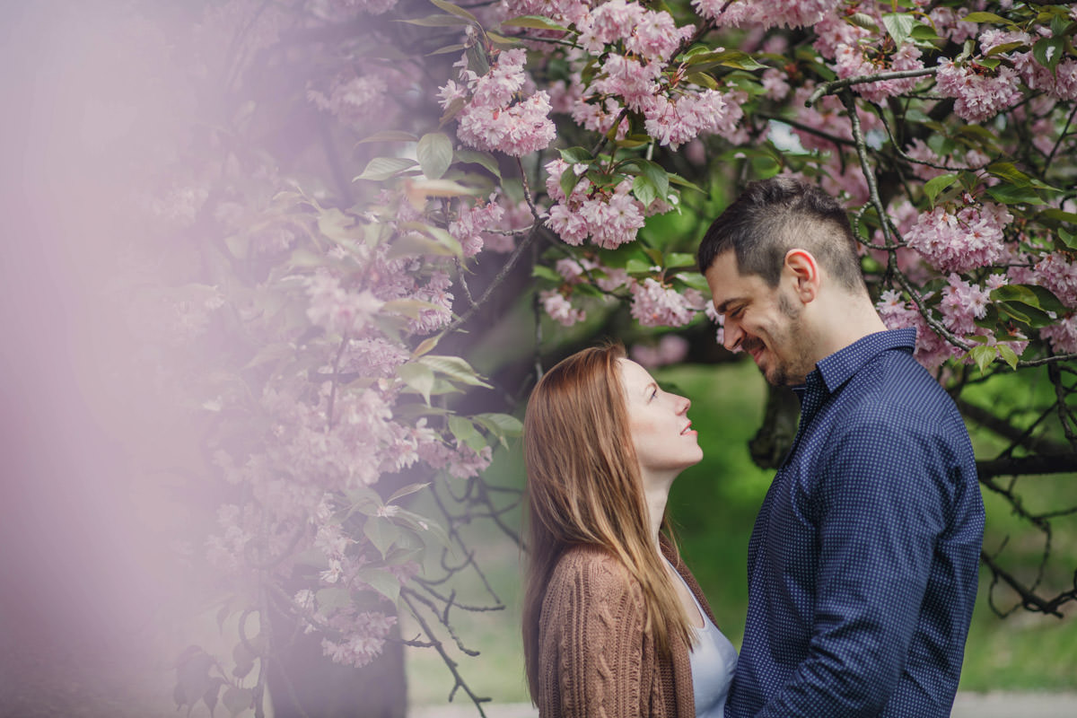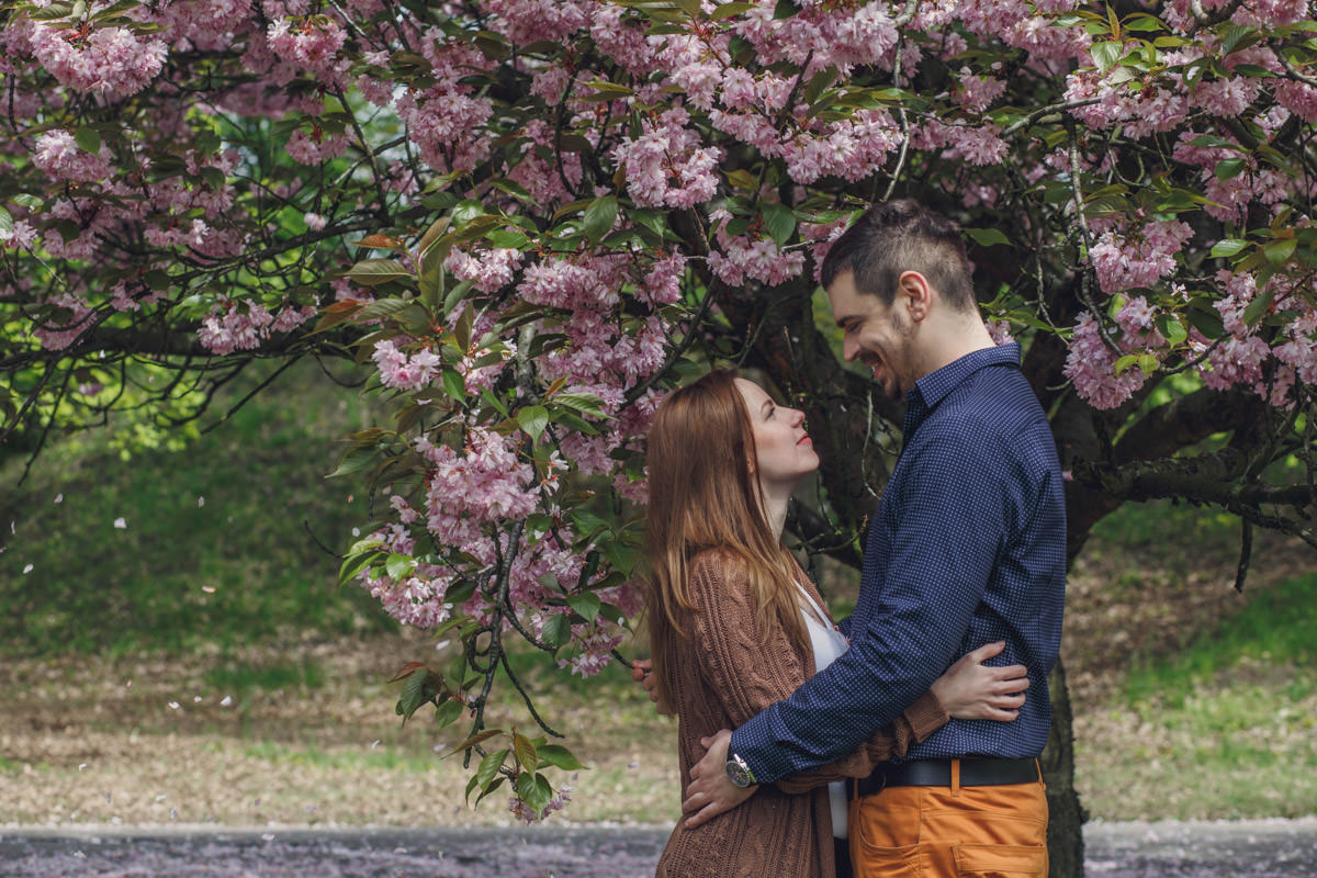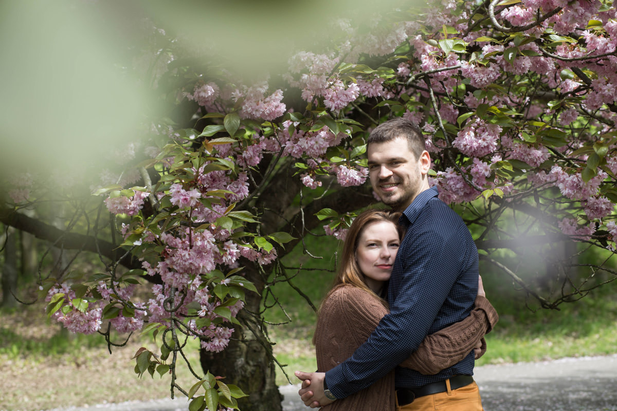 Agatę i Mateusza poznałam, kiedy szukali fotografa na swój ślub. Widzę się z nimi już za kilka dni na ich ślubie. Wiosną udało nam się zrobić sesję narzeczeńską przy kwitnących wiśniach. Piękne!