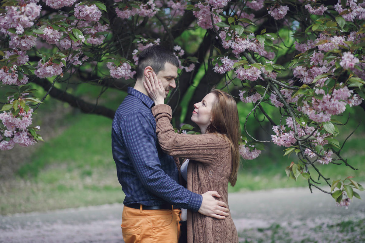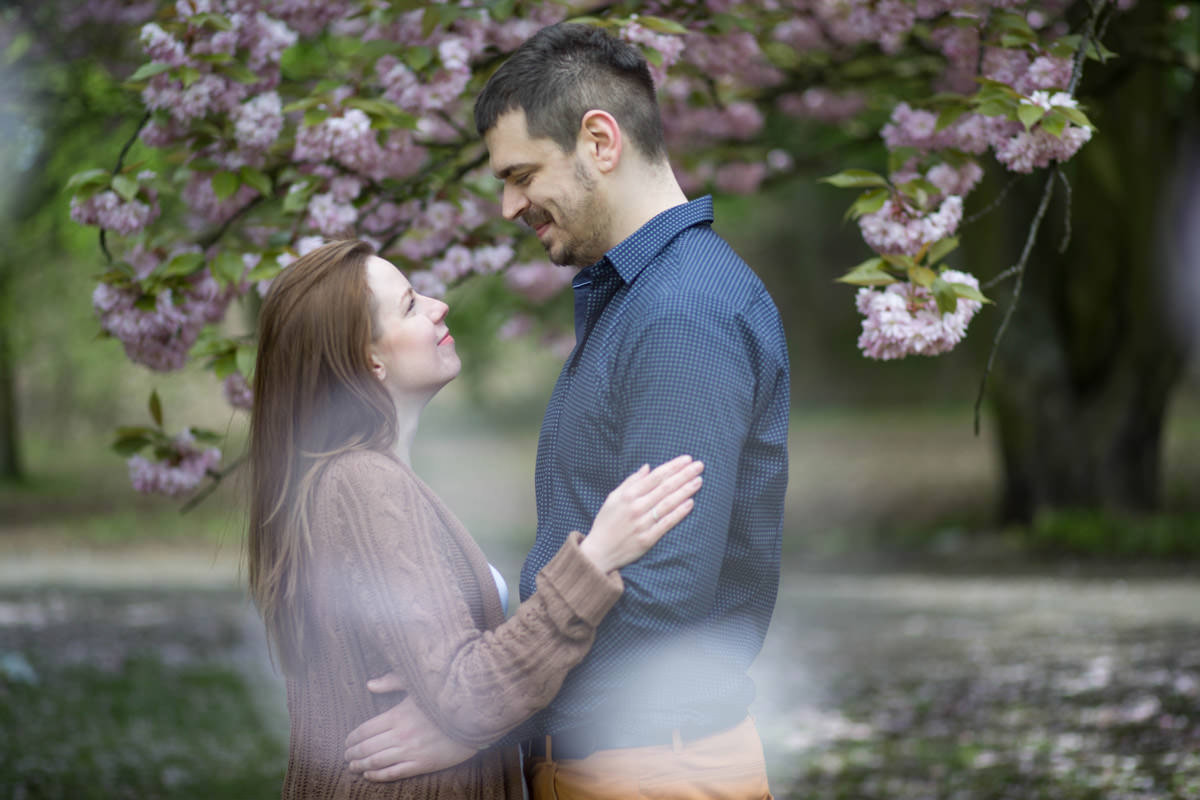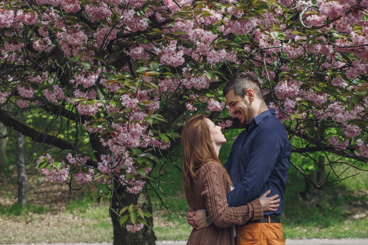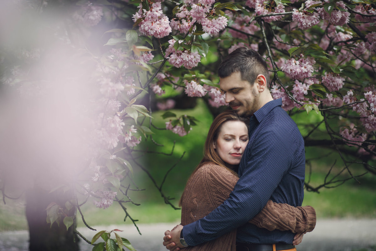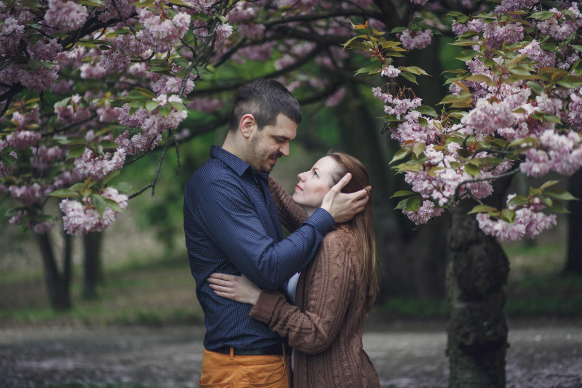 Agatę i Mateusza poznałam, kiedy szukali fotografa na swój ślub. Widzę się z nimi już za kilka dni na ich ślubie. Wiosną udało nam się zrobić sesję narzeczeńską przy kwitnących wiśniach. Piękne!